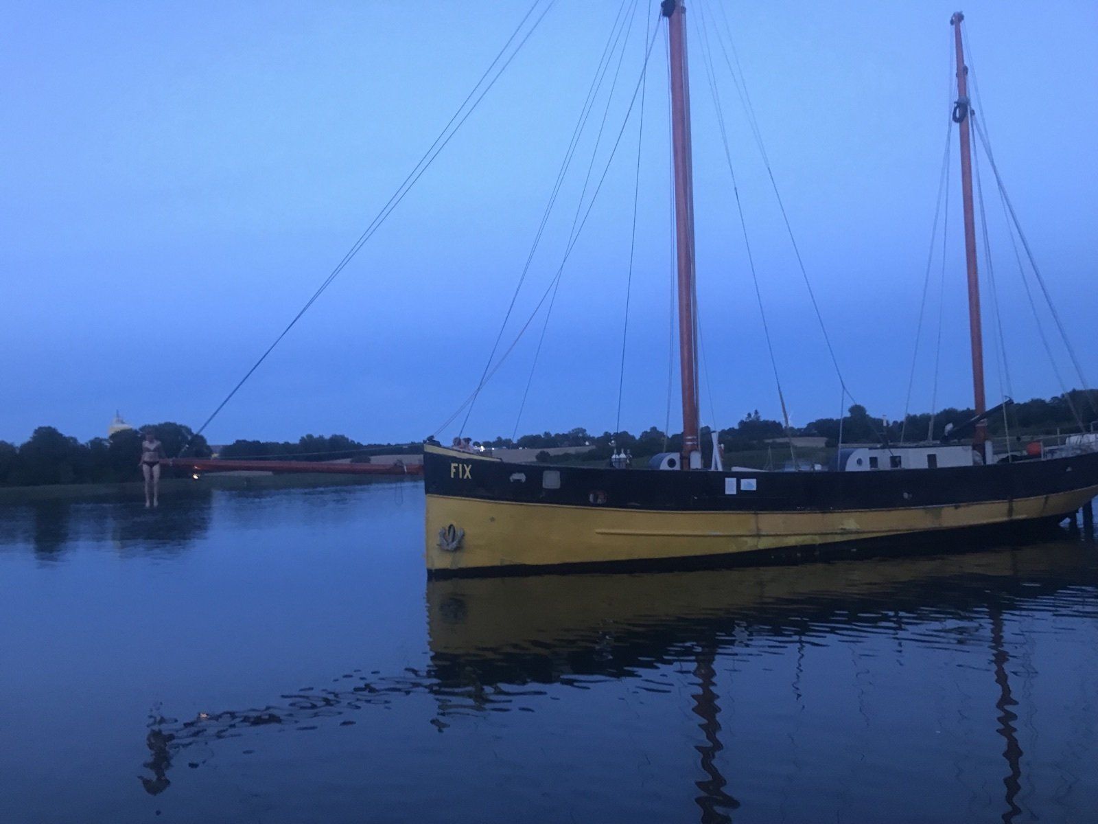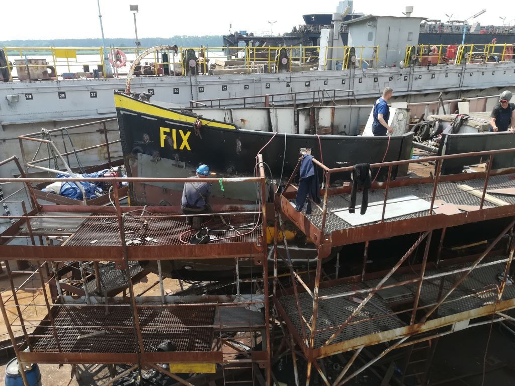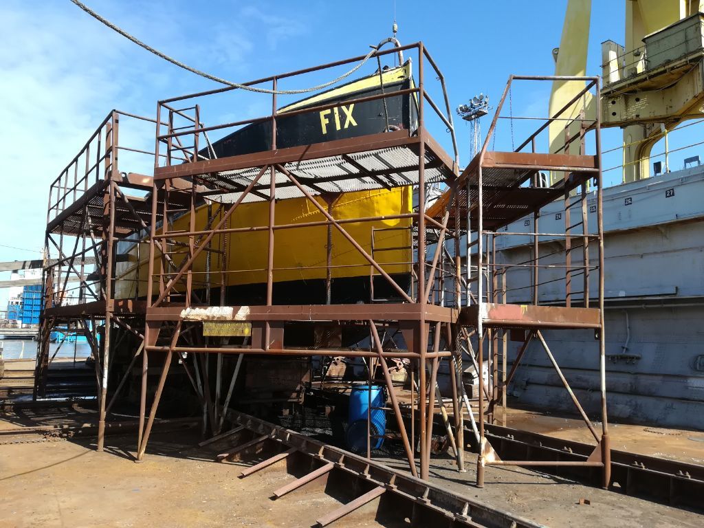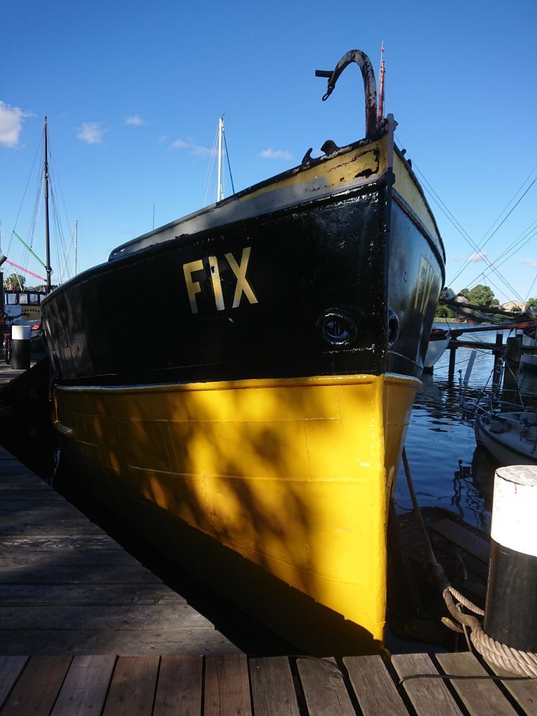 FIX ist gestern um 10:00 ausgedockt worden und schwimmt jetzt wieder. Sie liegt an der Pier in der Werft, heute Abend reisen Laura und Marius an, und am Dienstag wollen sie, Arne und Seemann in Kappeln ankommen. Die groben Schiffbauarbeiten sind damit jetzt erst mal gemacht, und es kann mit Farbe und weniger groben Stahlarbeiten weitergehen. In Kappeln werden wir erst mal den neuen Stahl unter Farbe bringen und neue Pläne für die nächste Zukunft schmieden.