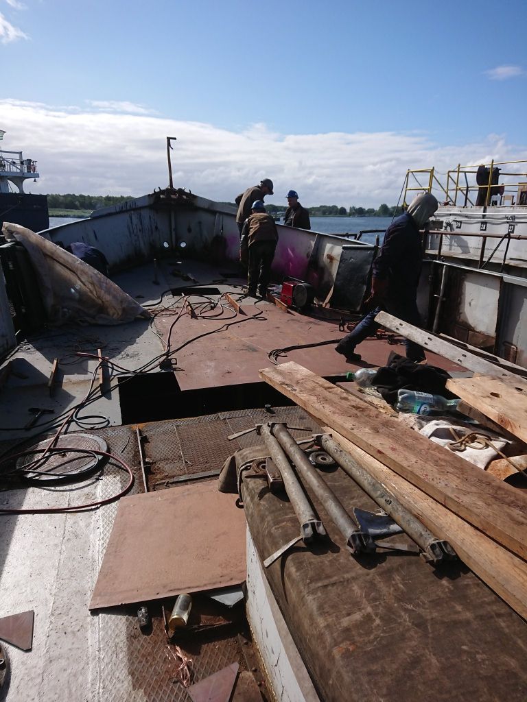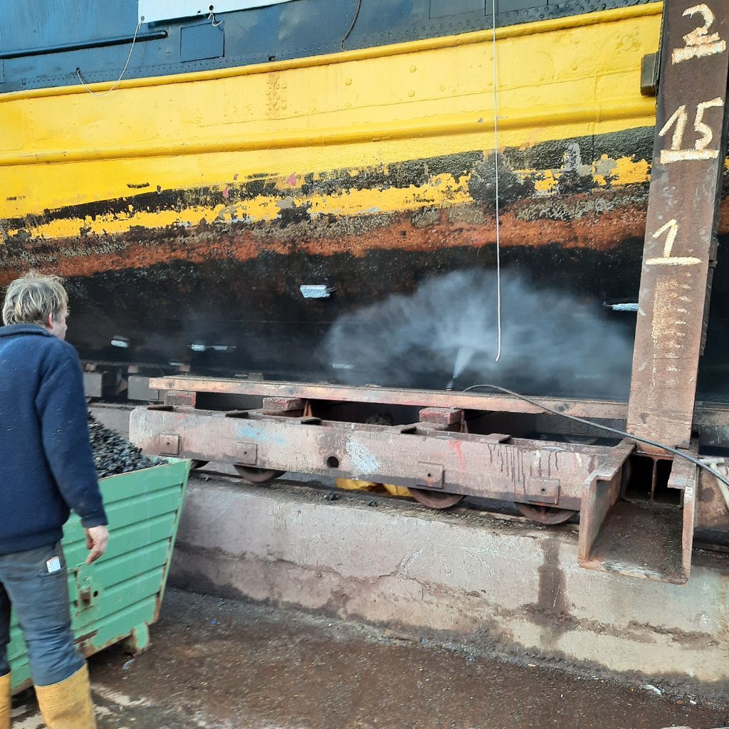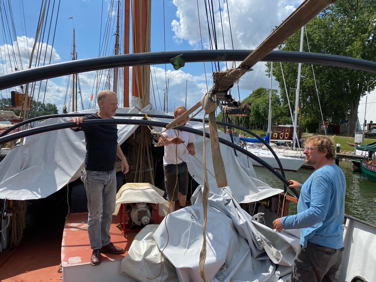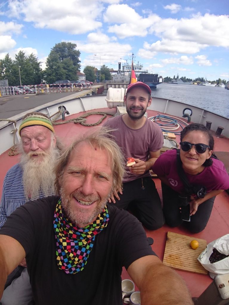 Carsten, Hauke und Vadim bringen FIX nach Svinemünde zur Werft. Kurz vor Abfahrt wurde es noch turbulent, weil Mani Jordan feststellte, dass der Grund für scharze Gummipopel an der Decke des Maschinenraumes Abrieb der Kupplung war, denn die Maschine war nicht in Flucht mit dem Getriebe eingebaut. Jetzt ist sie es und es kann losgehen. Vadim und Carsten haben die letzten Tage geräumt, geschweißt und geschraubt. Hauke hat sich als Reisebüro betätigt und einen Mietwagen, Hotelzimmer auf Usedom organisiert, damit die Crew auch zurückkommt. Carsten bleibt erst einmal in einer Ferienwohnung auf Usedom und betreut die Arbeiten vor Ort.