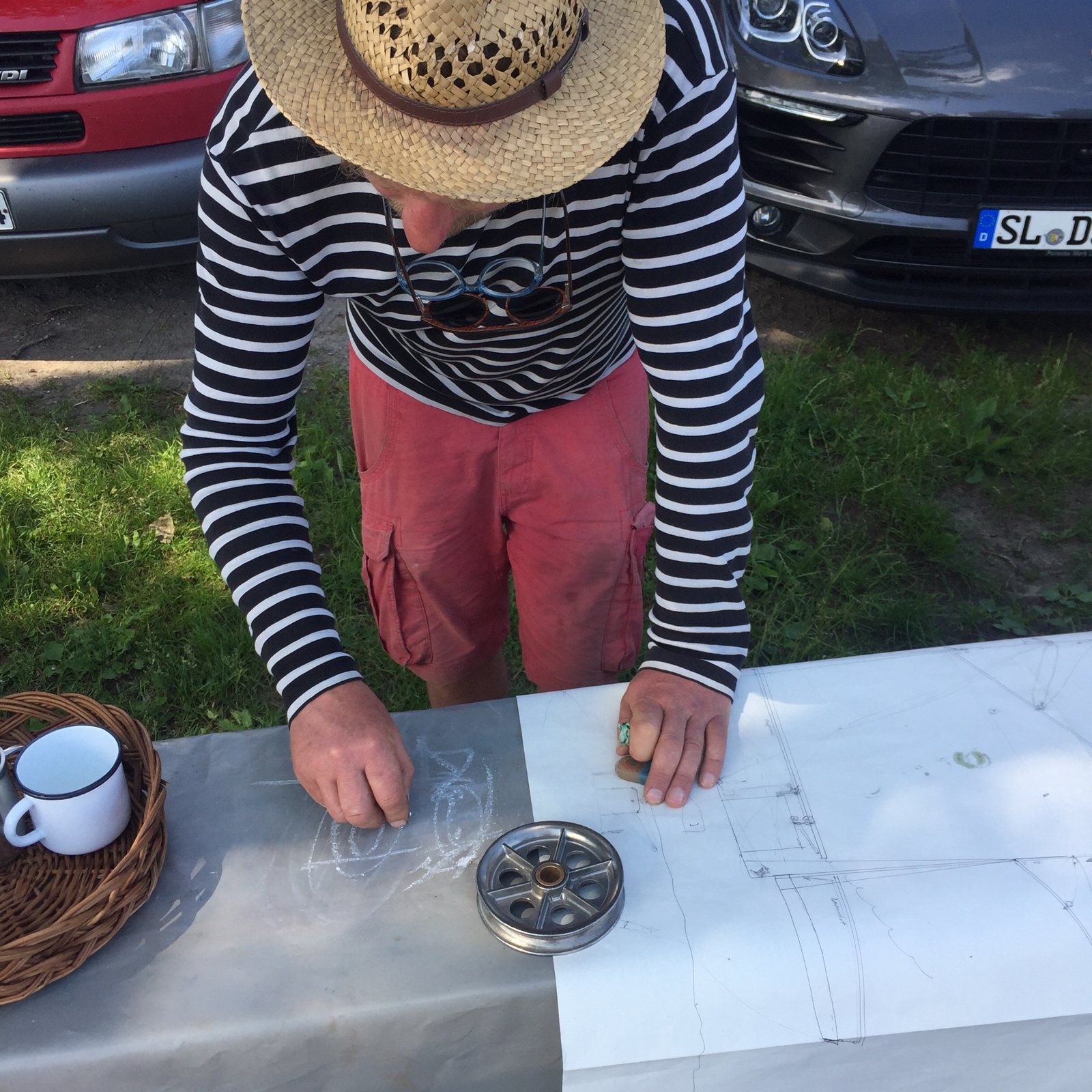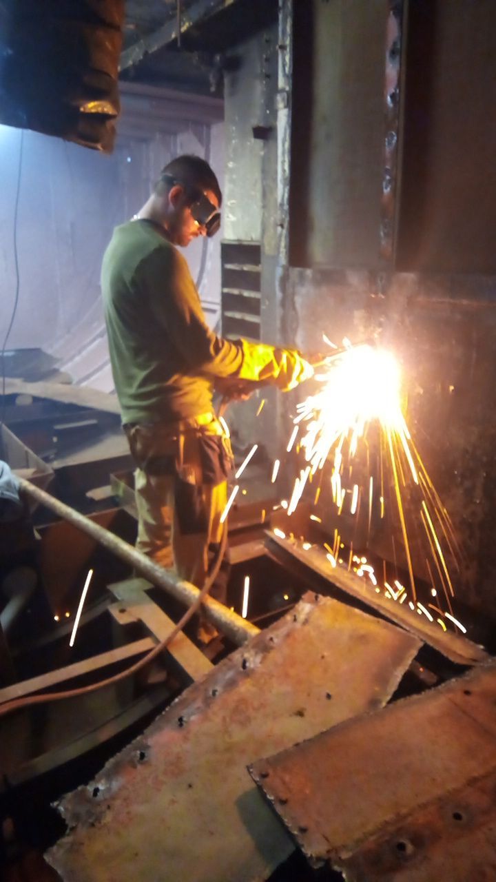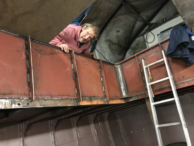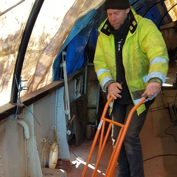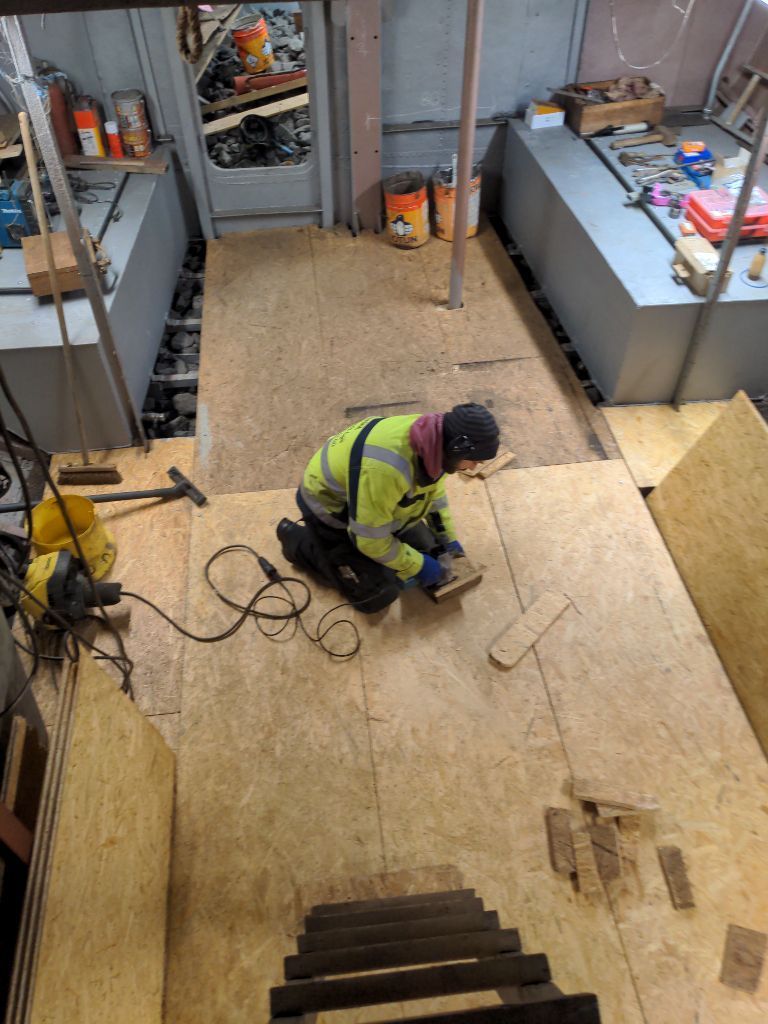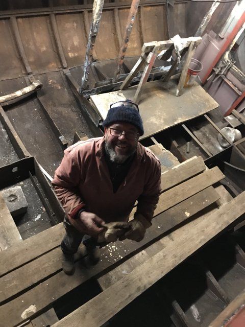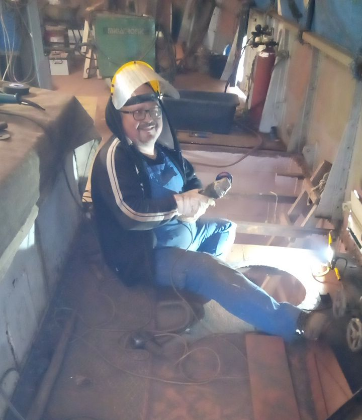 Ostern fand eine intensive Werkelwoche statt, bei der es viel Unterstützung gab. Zum Beispiel von Paul, der uns eine neue und vertrauenswürdigere Gangway gebaut hat. Papa Holger hat fleißig Löcher in die Spanten gebohrt, damit dort später die Unterkonstruktion für die Innenverkleidung befestigt werden kann. Im Logis wurde der restliche Ballast verteilt und gesichert und eine Unterkonstruktion gebaut, um anschließend auch dort den Baufußboden zu verlegen. Wir haben gemeinsam geschweißt, geschleift, lackiert, entrostet, geräumt und gereinigt, gebohrt und gesägt. Simon hat einen Kettenstopper eingebaut und die Klüverstütze repariert. Und wir waren fast vollständig und hatten Zeit, um viele Dinge zu beschnacken. Unter anderem die Position der Nagelbänke. Mit der Produktion der Nägel hat Carsten schon angefangen.