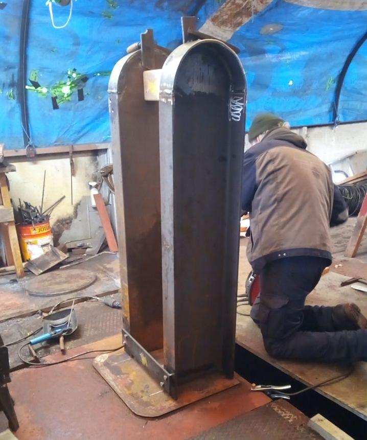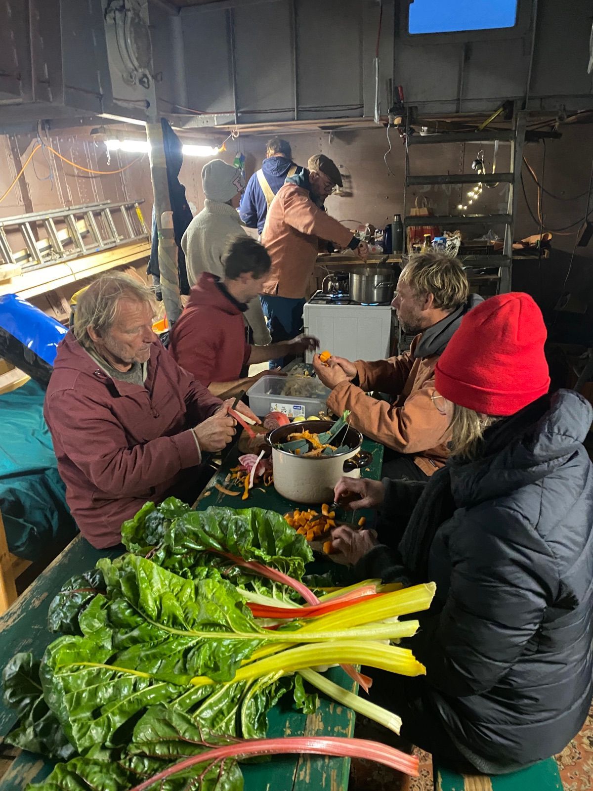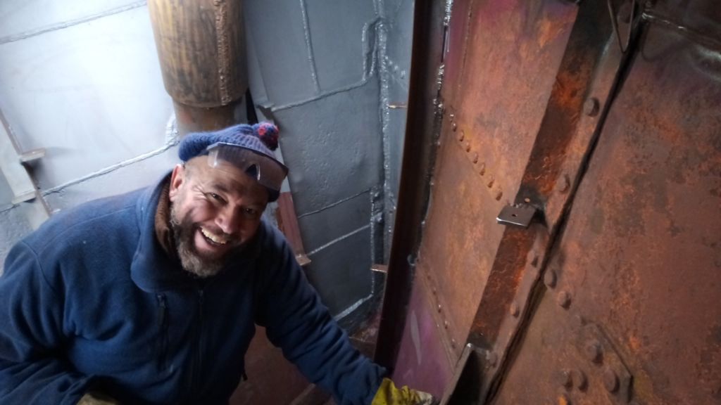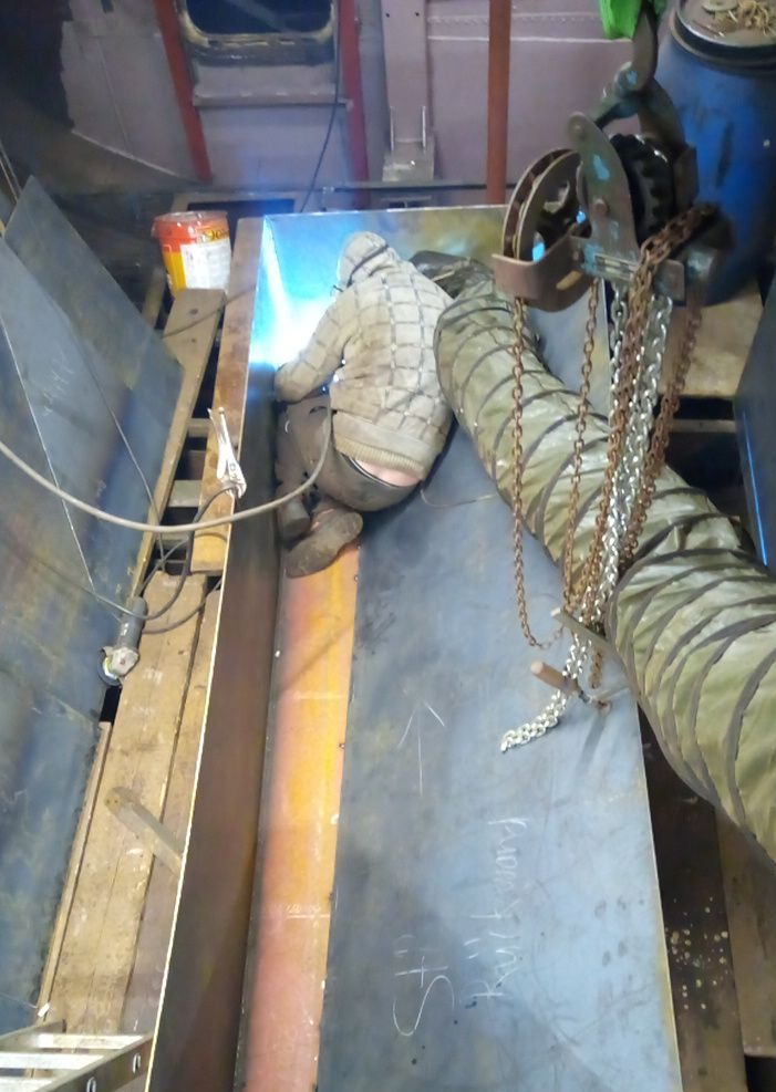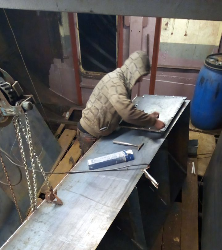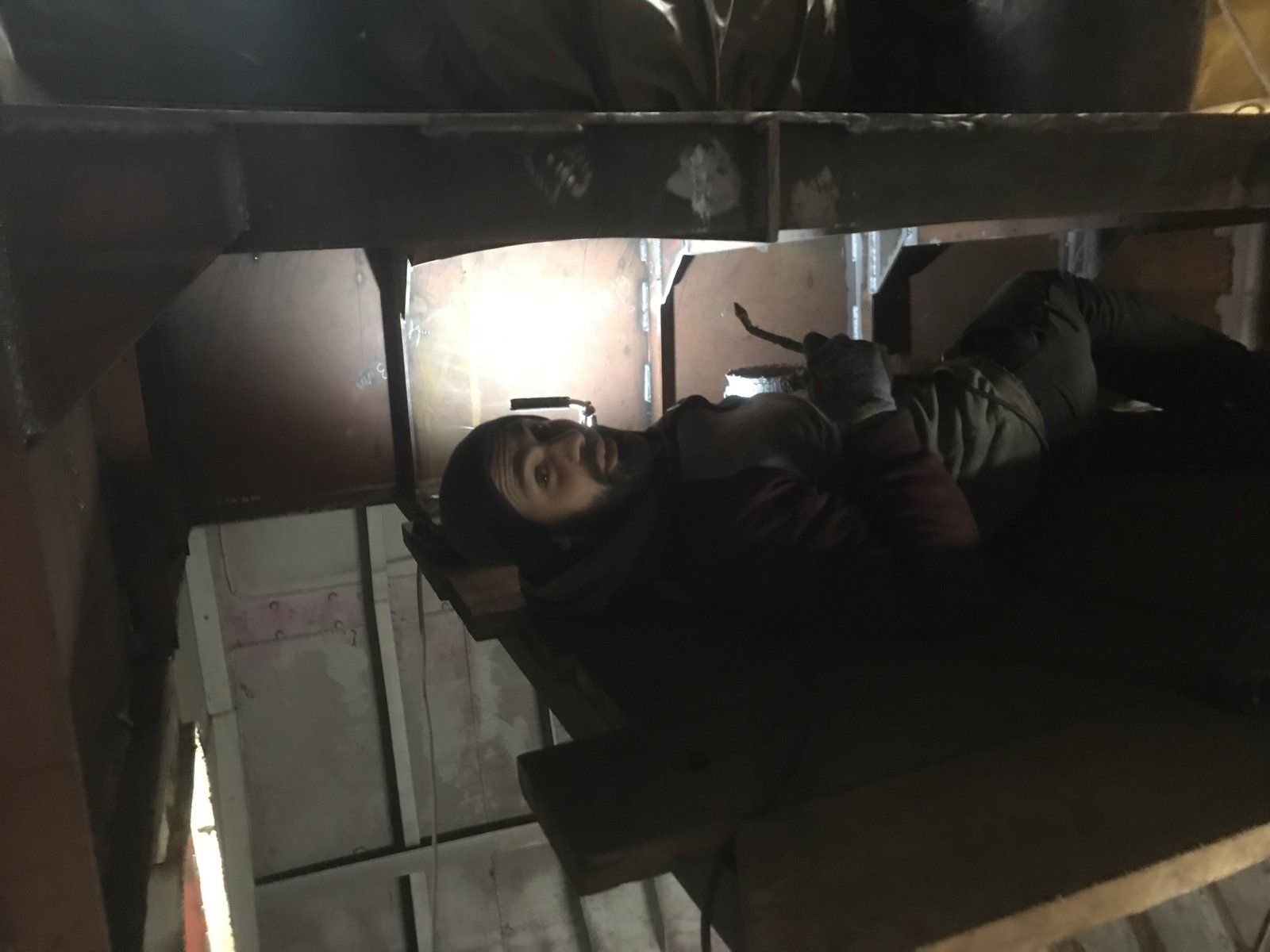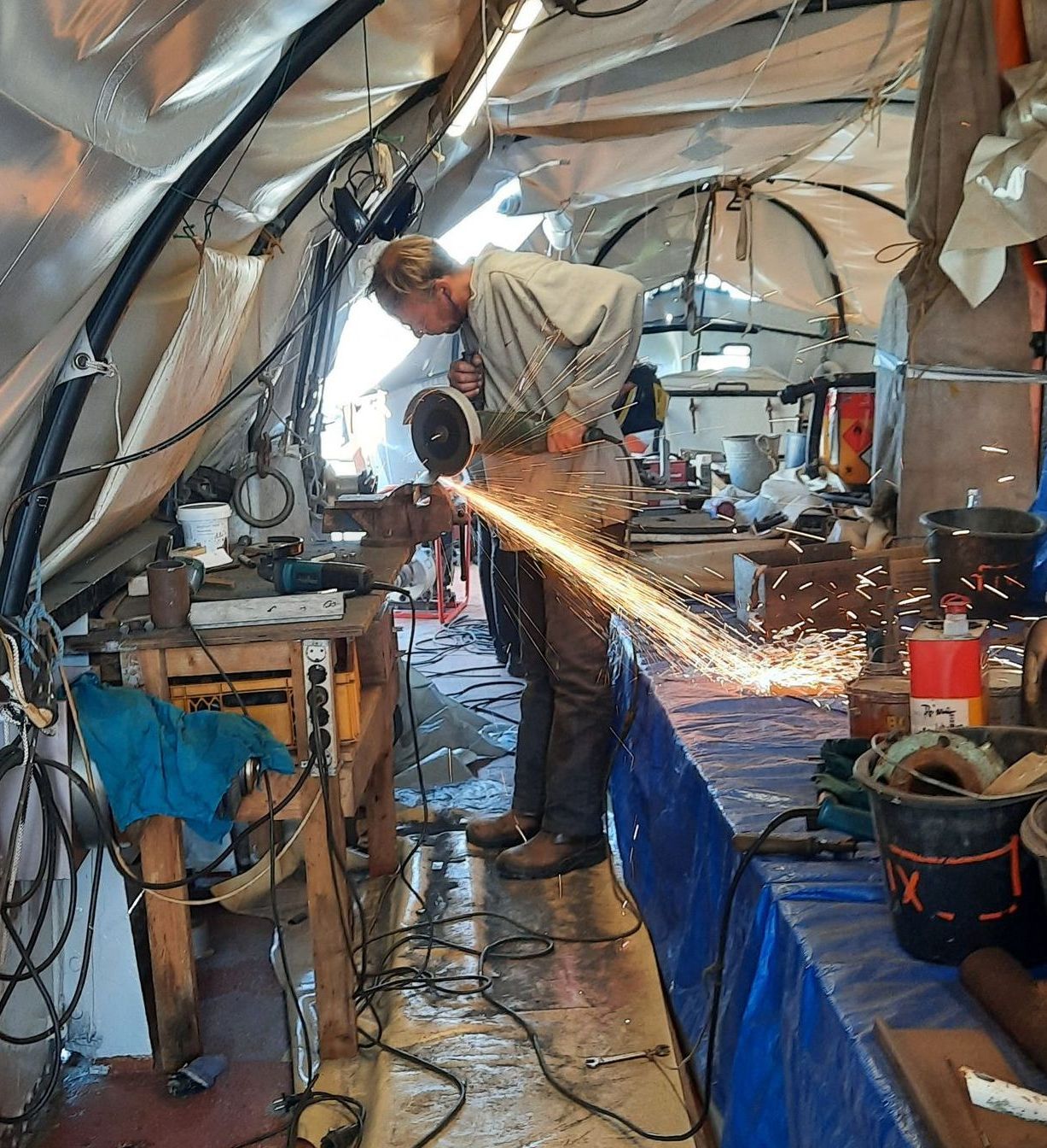 Die Segel sind leider wieder ab und FIX liegt eingepackt unter einer Arbeitsplane. Jetzt im Winter kann Carsten wieder ständig vor Ort sein, um die verbleibenden Arbeiten voranzutreiben. FIX hat zwei Wassertanks bekommen, die von Kamil und Marcin zusammengeschweißt worden sind.