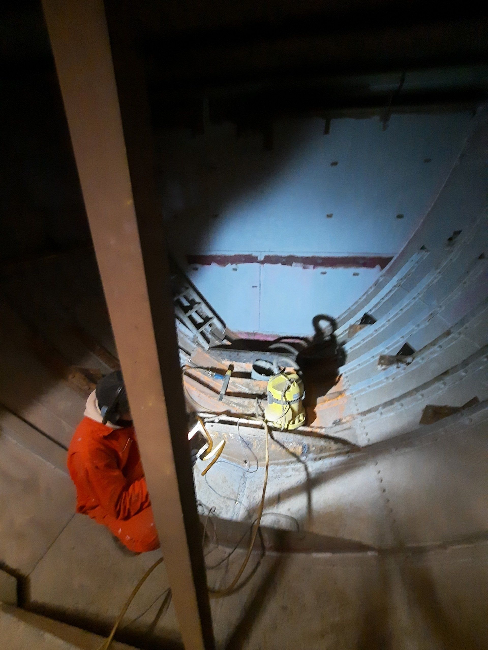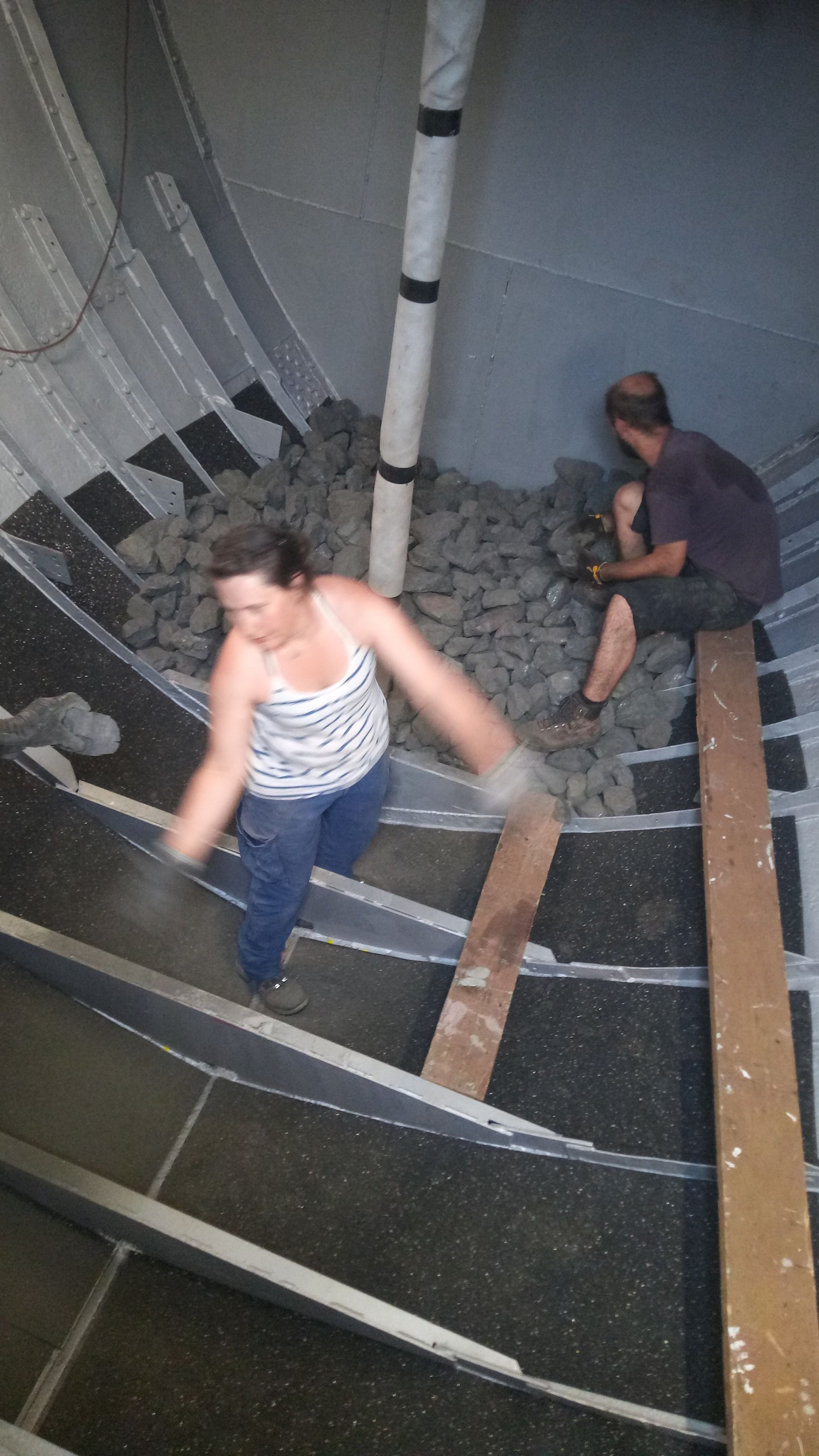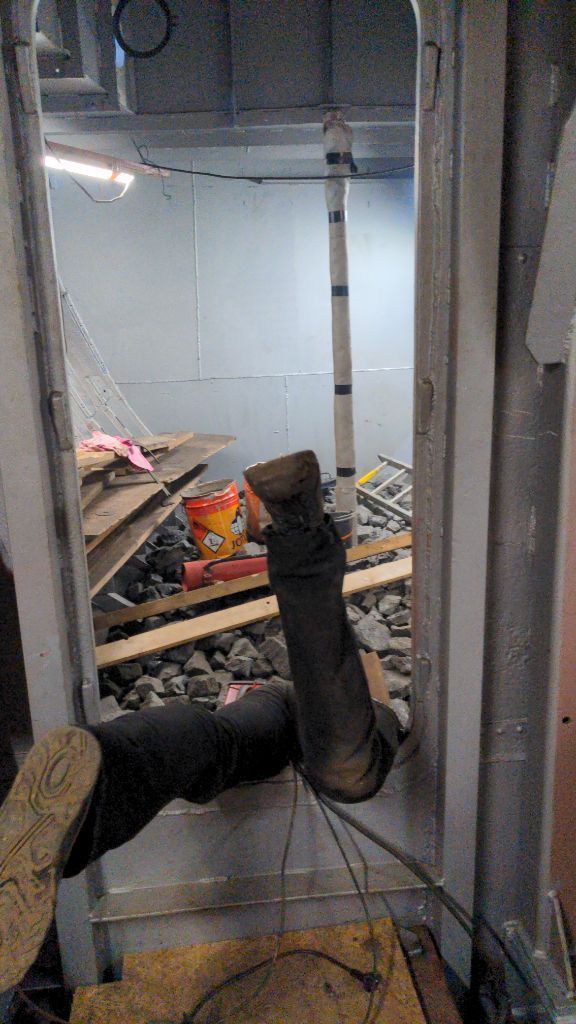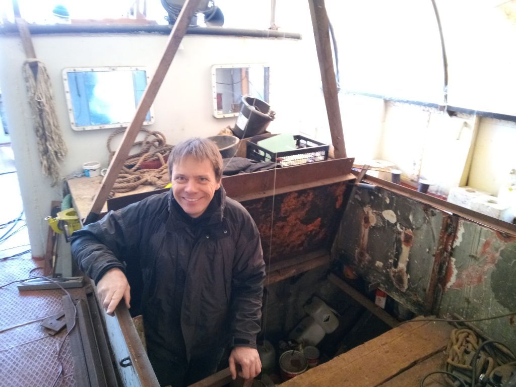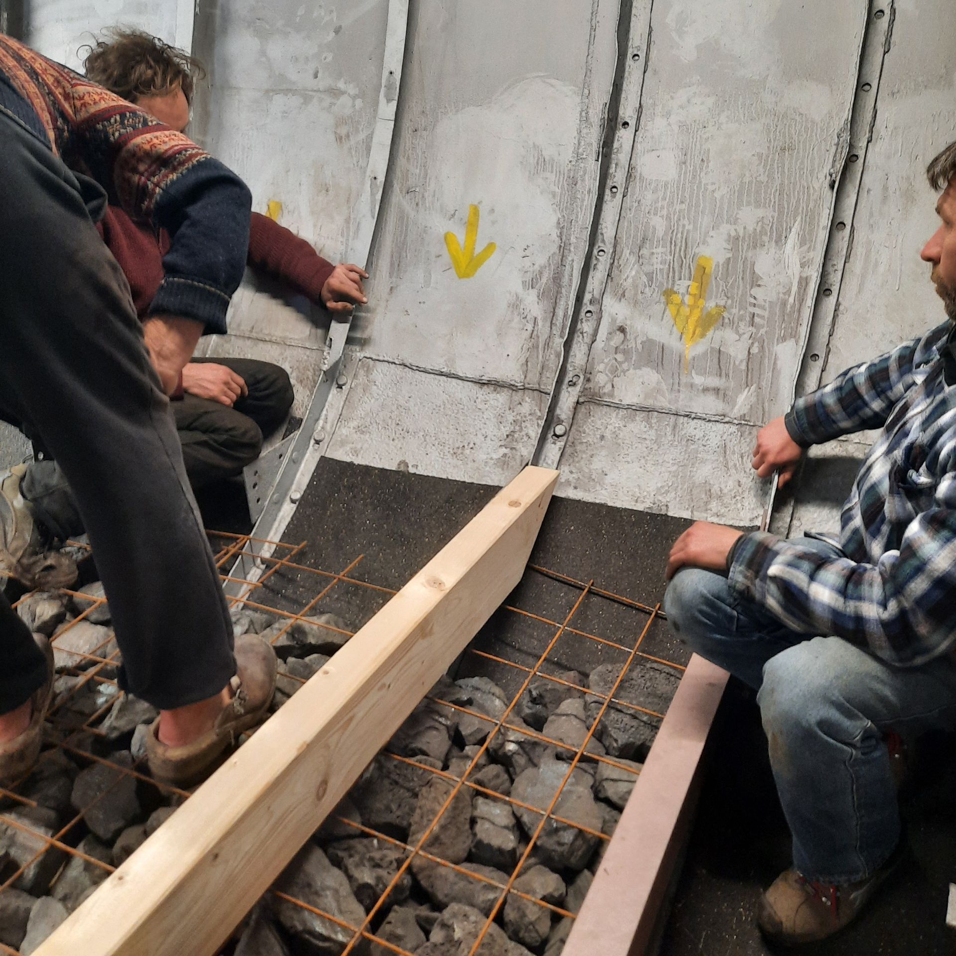 Carsten berichtet von den täglichen Fortschritten vor Ort. Simon, Mareile, Hauke und Carsten haben Beton aus dem Vorschiff gestemmt. Jetzt ist der Zugang zum Kollisionsschott frei. Kettenkasten und Vorpiek sind betonfrei.