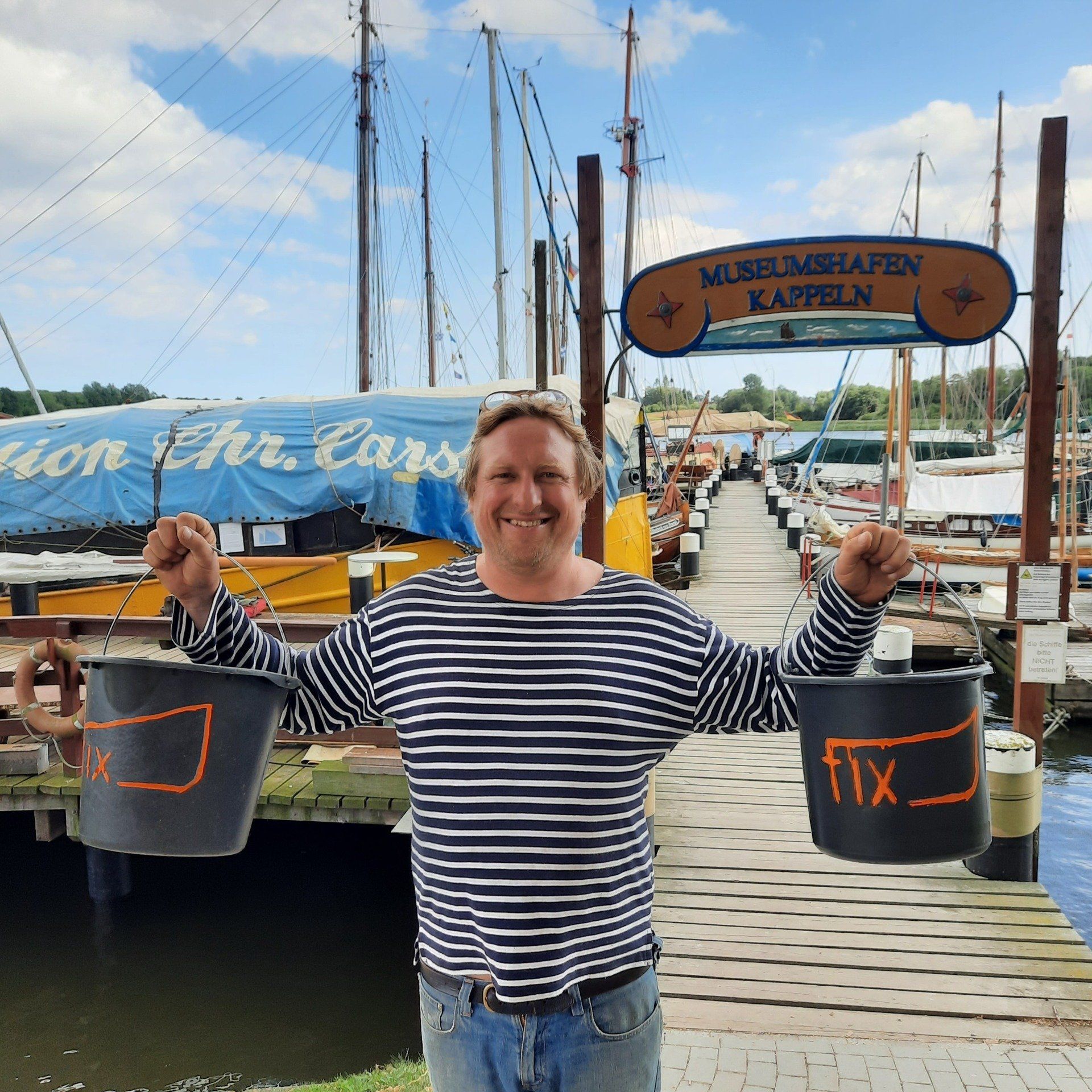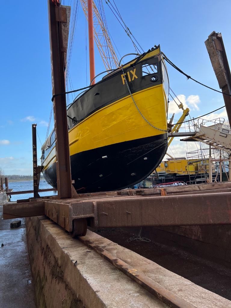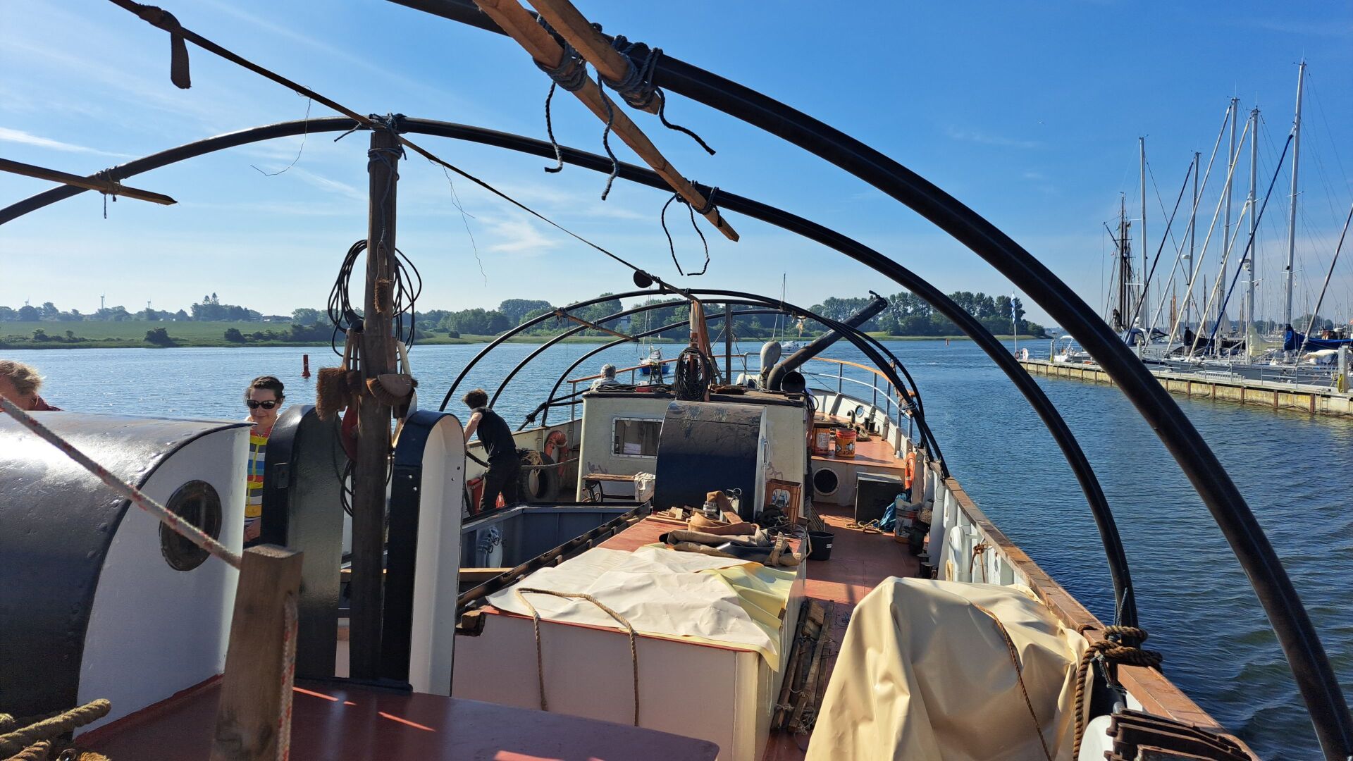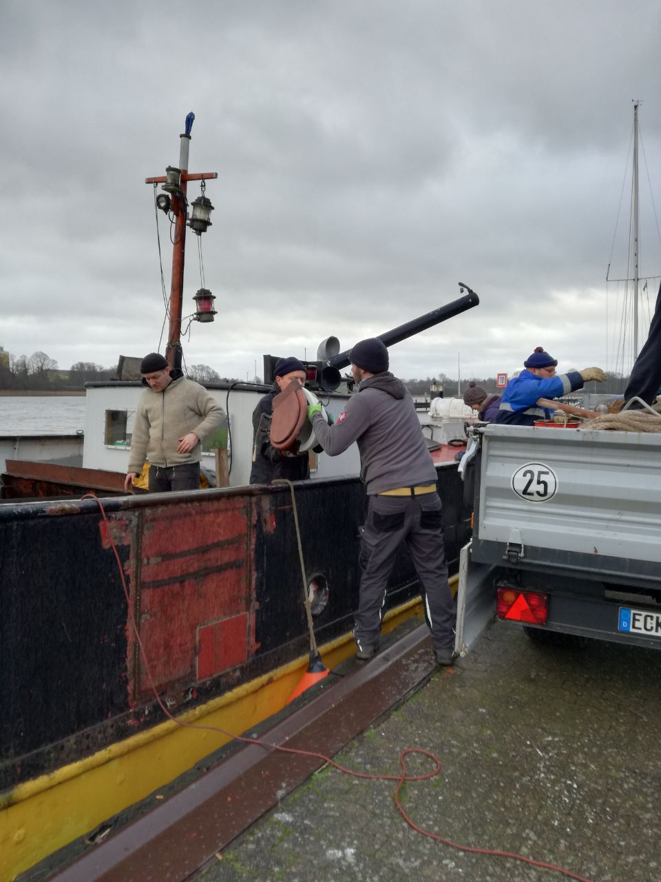 FIX ist nach einer schönen Überführungsreise zurück in Kappeln. Sie liegt jetzt am Bauplatz im Museumshafen, wo es weitergehen kann.