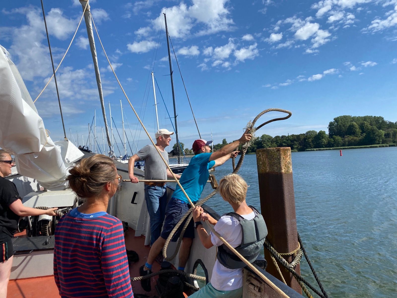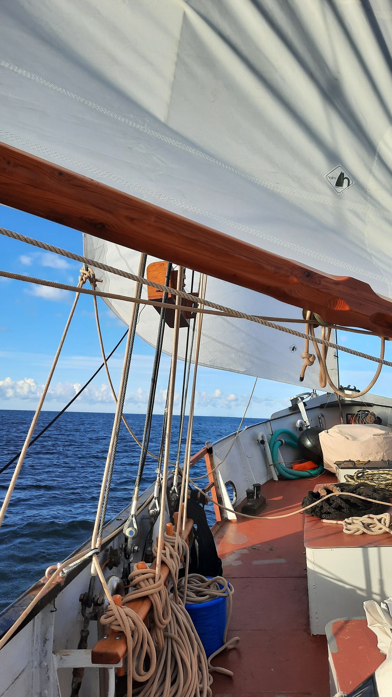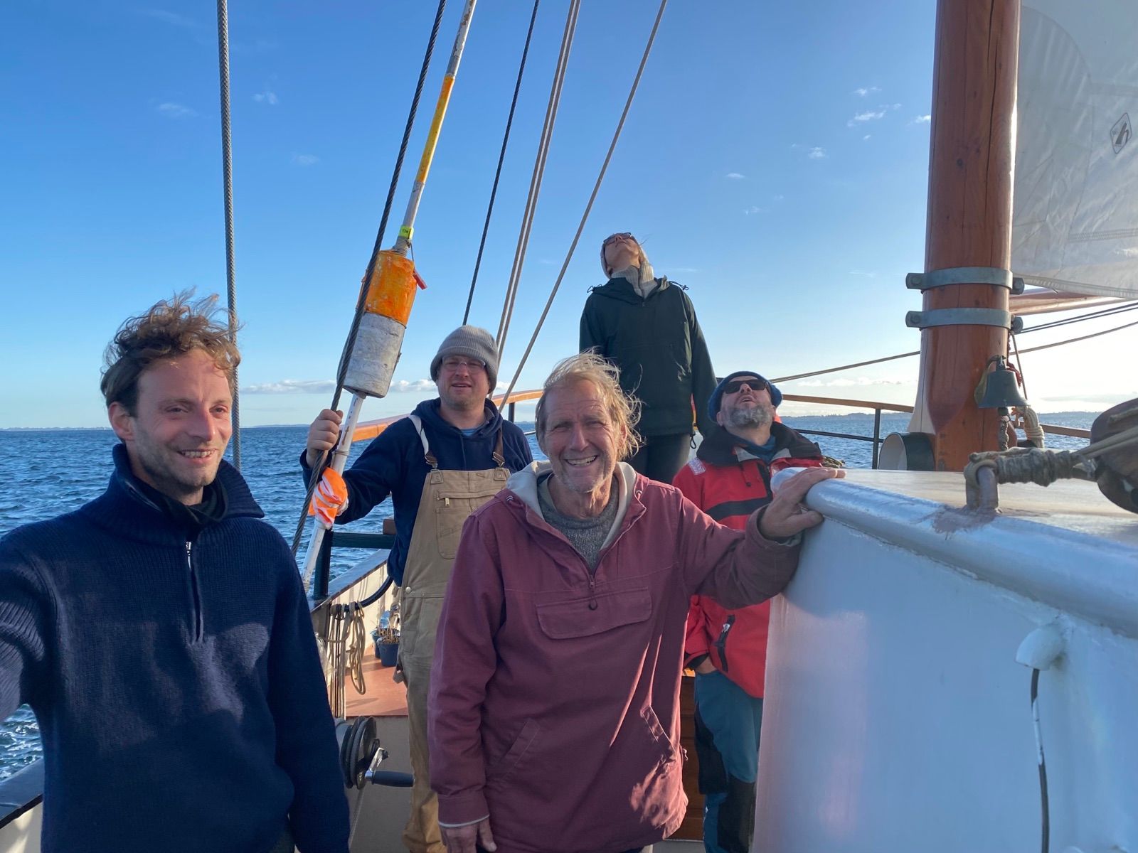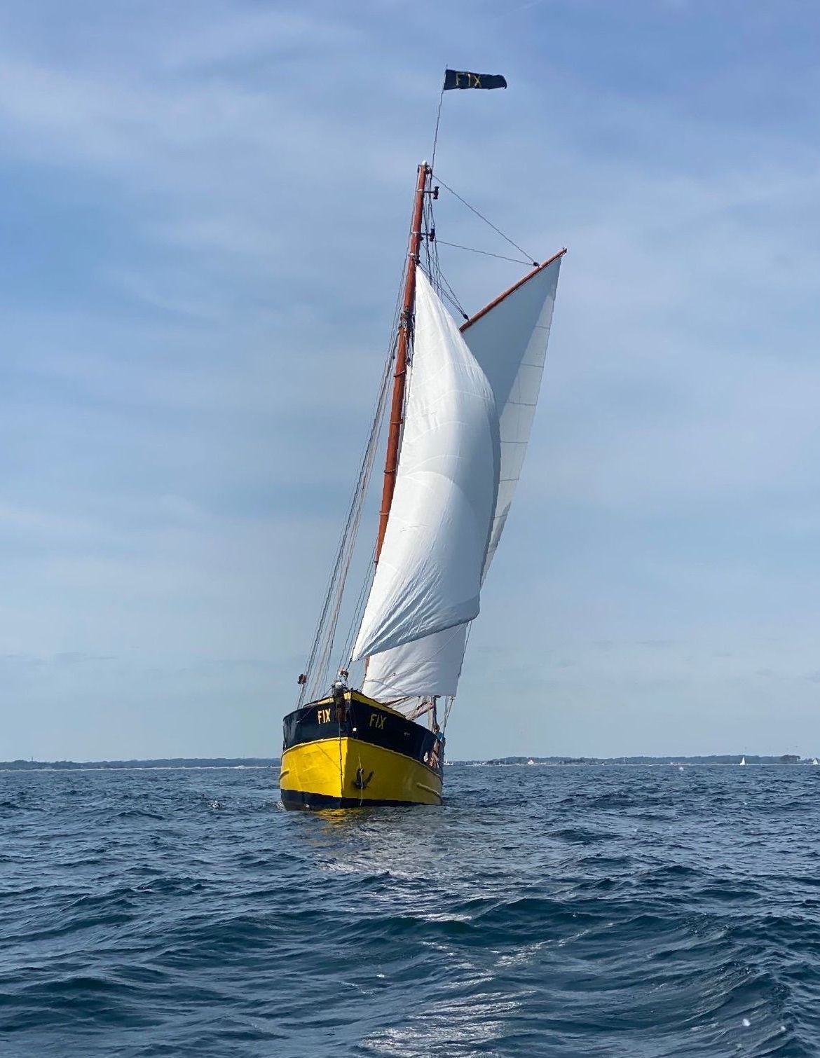 Erster Eindruck von Fix als Segelschiff: sehr angenehme Bewegung im Seegang, wird ein schneller Segler und geht sogar trotz des geringen Vorfußes an den Wind. Das war ein toller Tag! Im Alter von 116 Jahren lernt FIX das Segeln.