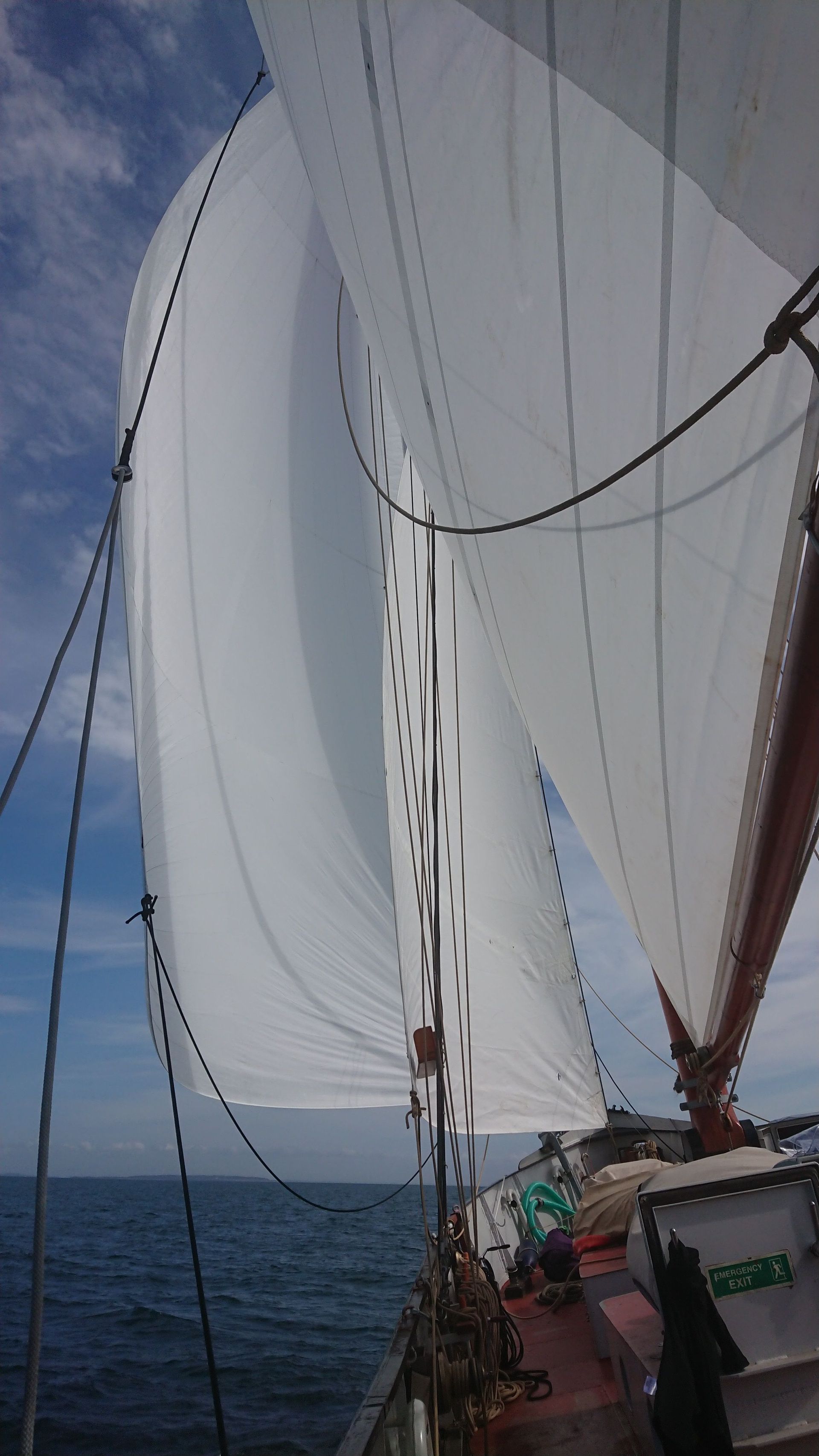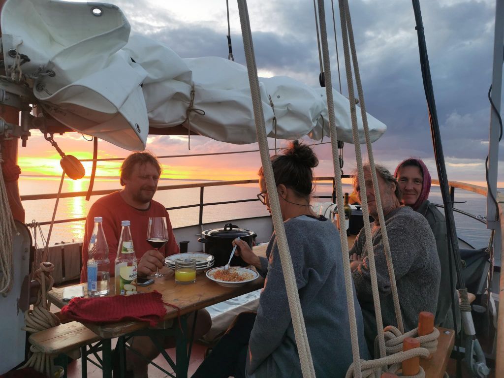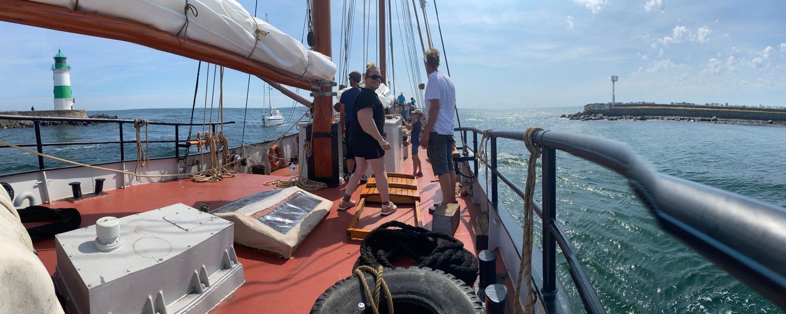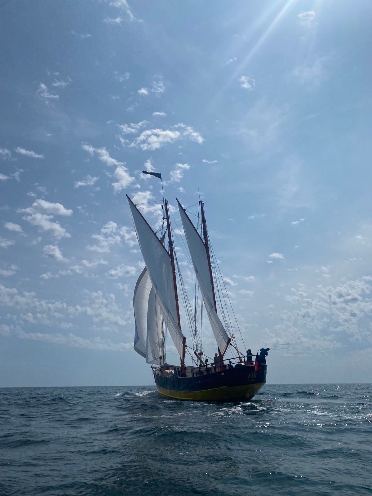 Erster Eindruck von Fix als Segelschiff: sehr angenehme Bewegung im Seegang, wird ein schneller Segler und geht sogar trotz des geringen Vorfußes an den Wind. Das war ein toller Tag! Im Alter von 116 Jahren lernt FIX das Segeln.