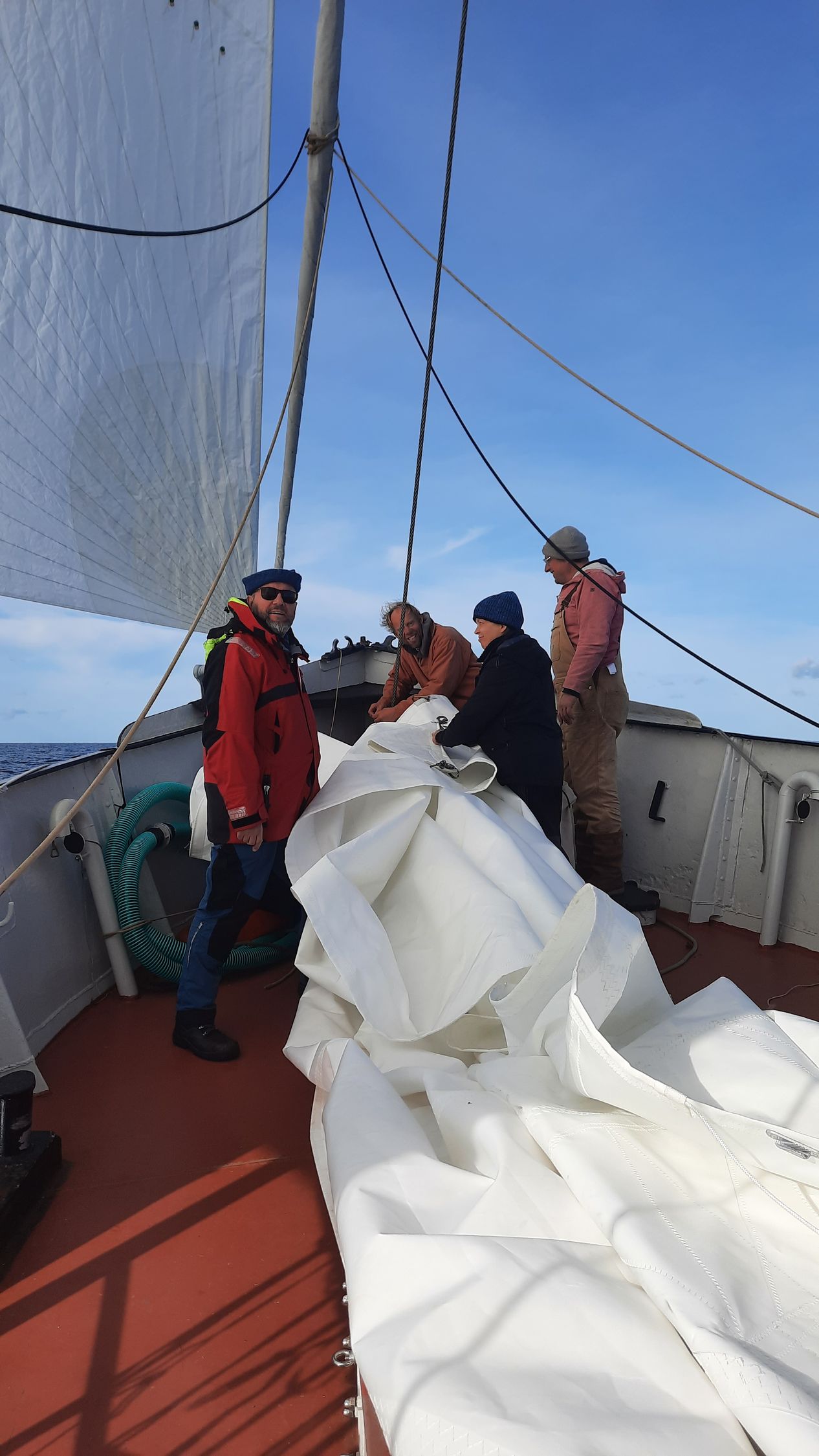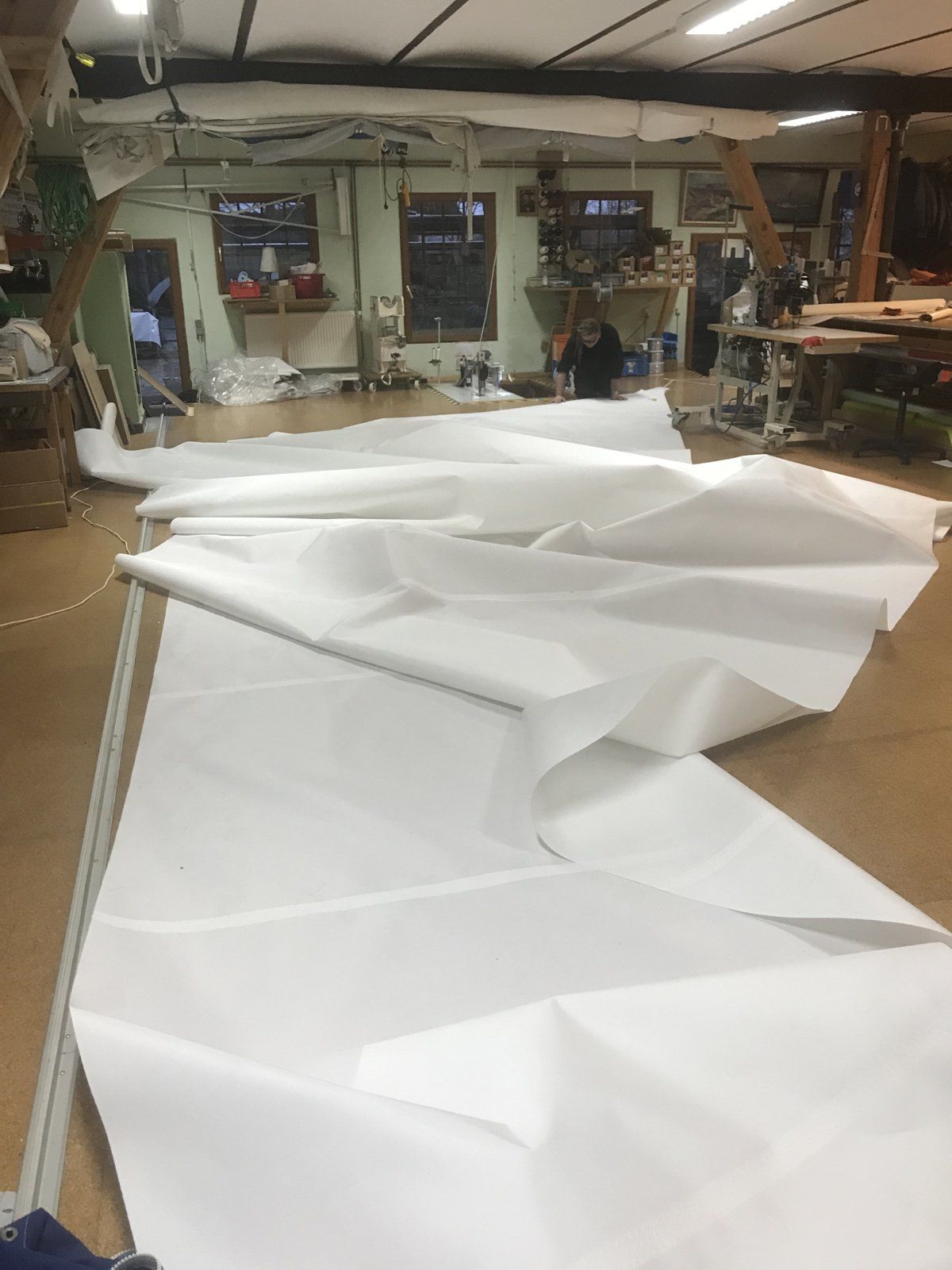 Die Klüversegel sind eingetütet und die Nähmaschine rattert weiter für das Code Zero- Segel.