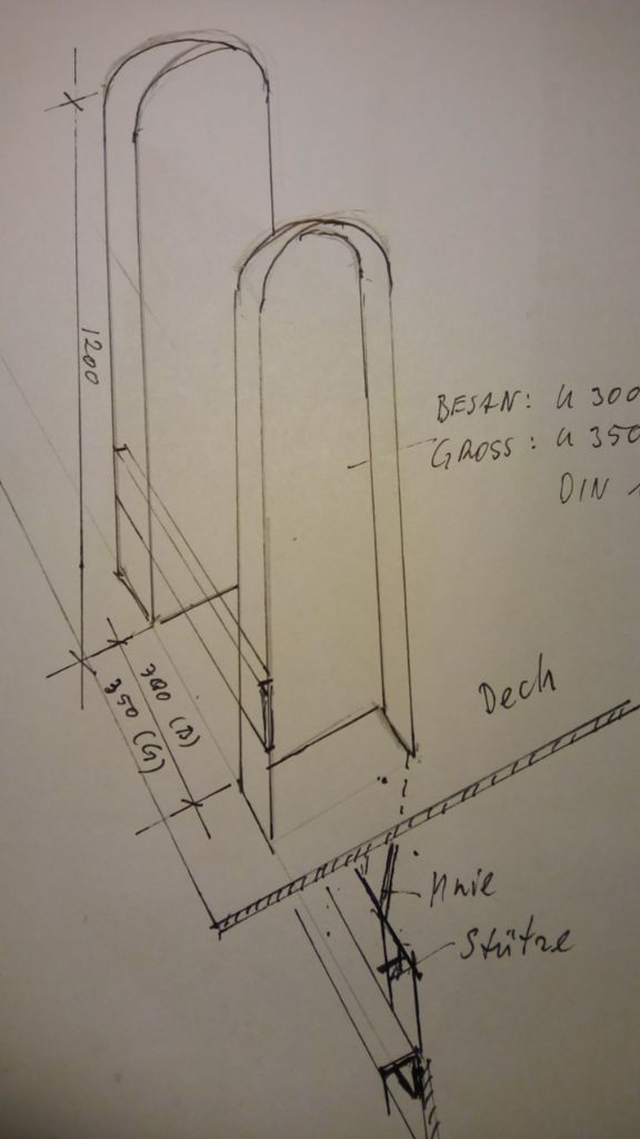 Der Stahl für den vorderen Aufbau, die Püttinge und die Decksreparaturen im Bereich Laderaum ist bestellt. Für die Mastfüße werden noch U-Träger gesucht (gemäß Carstens Skizze 300 für Besan und 350 für Groß). Und wir benötigen noch ca. 15t Ballast, z.B. Blei.