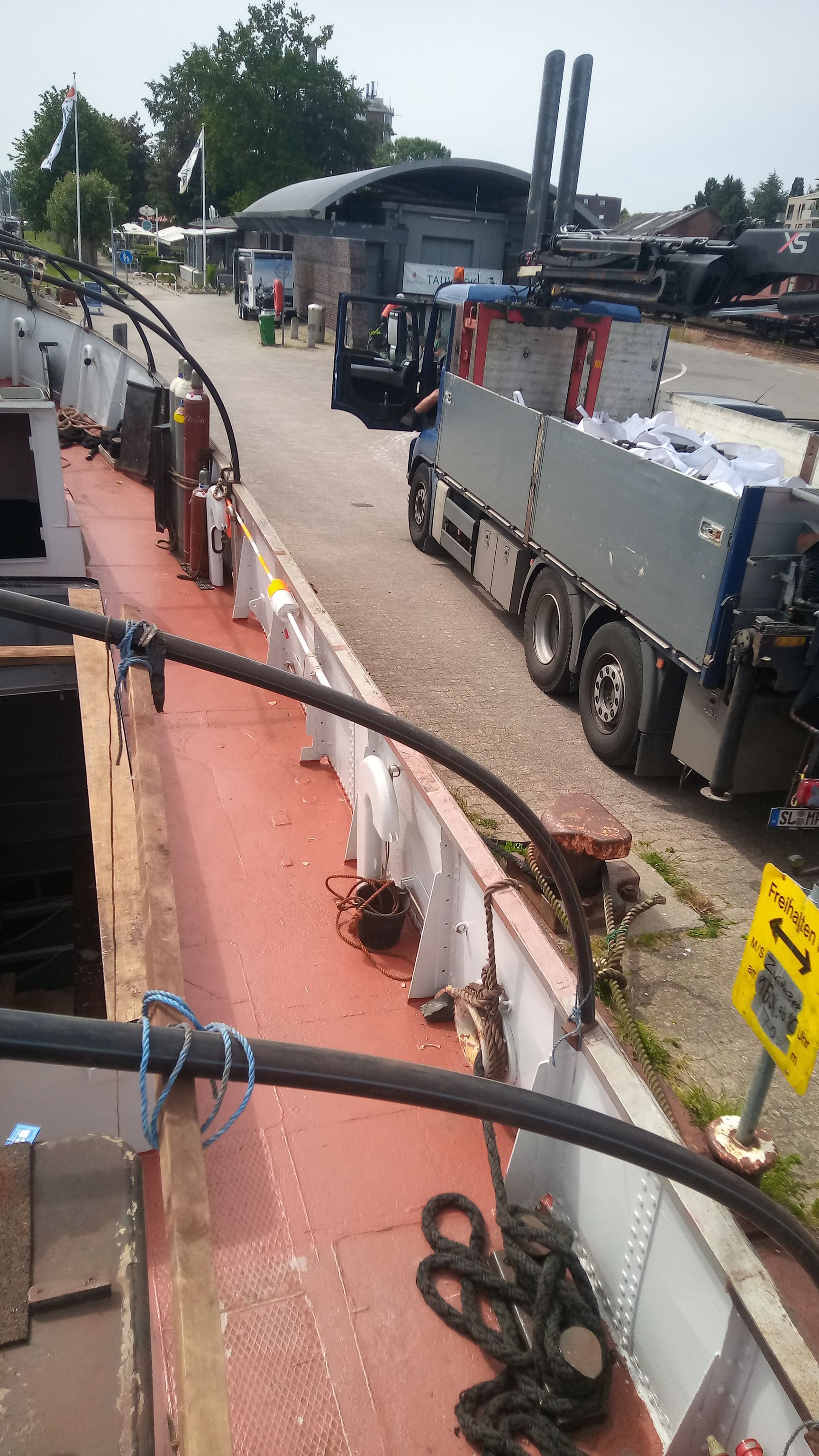 Wir haben den Laderaum bei so nicht verabredetem Schmuddelgedröppel an der Stadtpier ausgeräumt und alles mit Arnes Hänger in den Container nach Grödersby gebracht. Danach trafen wir und zum beschnacken auf Jonas. Wir sind die bereits vorliegenden vier Angebote der Werften durchgegangen und haben einige Inhalte zu dem Vertrag der Eignergemeinschaft klären können. Fest steht nun, dass FIX als private Yacht zugelassen wird.